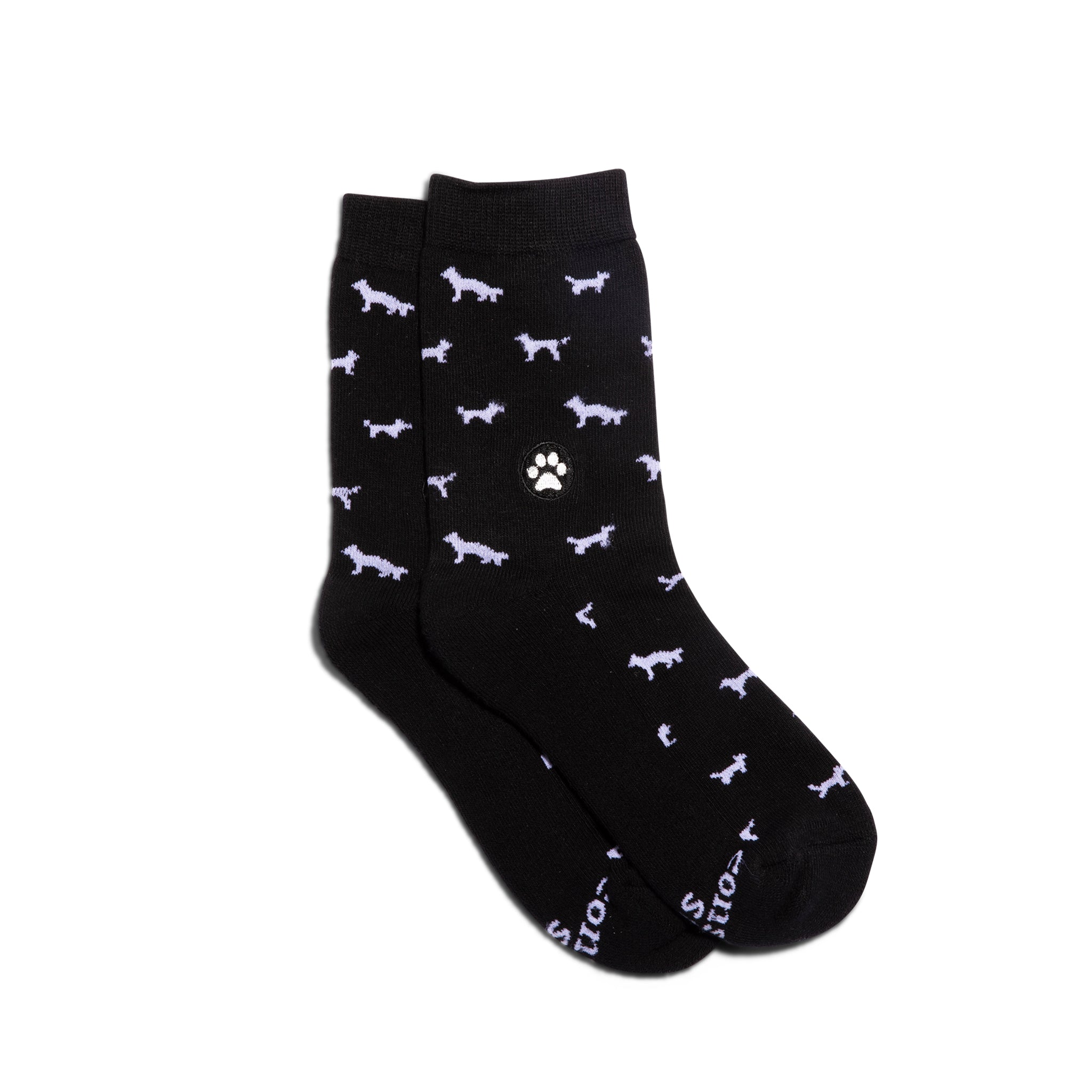 If your youngster’s best friend is their fur baby, then they’re gonna adore this soft black and white pair, decorated with pups and their puppy prints! Fairtrade and GOTS Certified* Knit with combed cotton yarn for a smooth feel, greater durability, and reduced pilling Terry padding for comfort Machine wash cold. Do not Bleach. Tumble dry Low. Do not Iron. 80% Fairtrade Organic Cotton, 18% Recycled Polyester, 2% Elastane Made in India Toddler size has silicone grippers for sliding *The silicone grippers used for our toddler pairs exclude them from the GOTS certification.