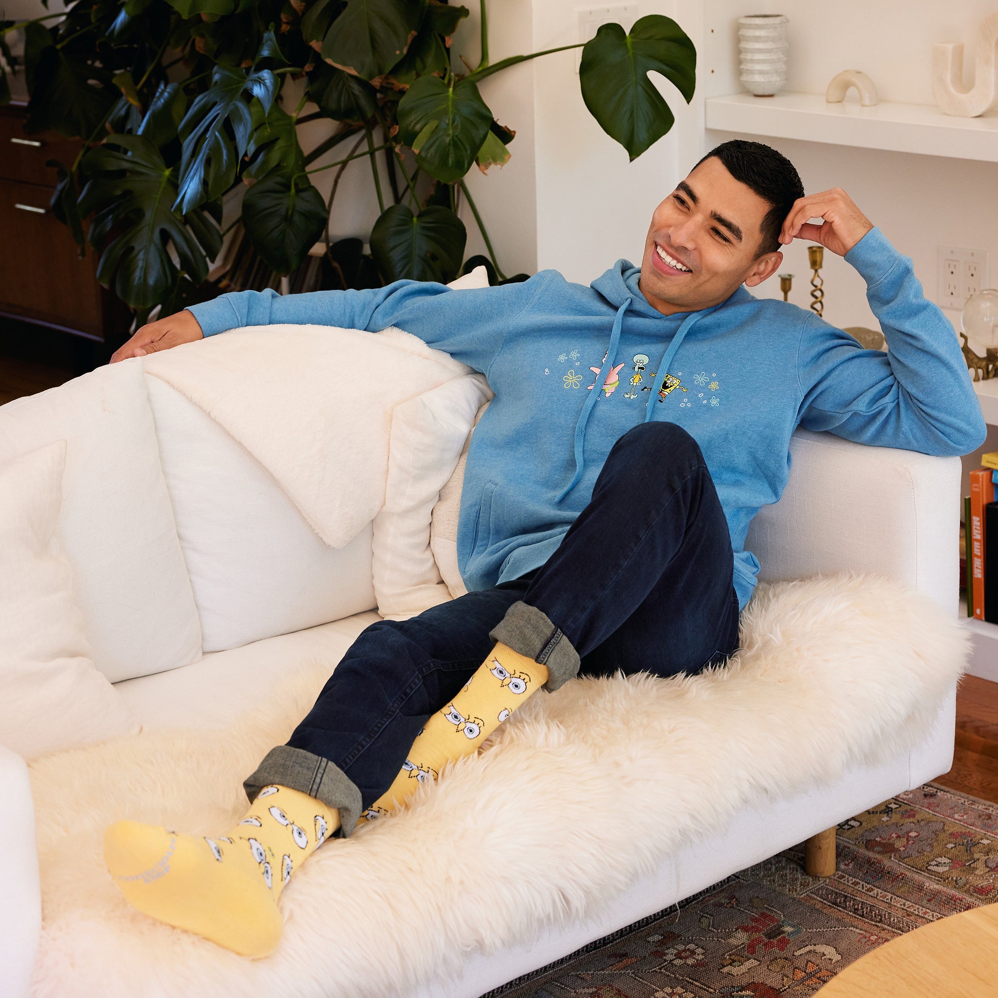 F is for friends who do stuff together, like hanging out on this Bikini Bottom blue embroidered hoodie! 100% organic cotton Brushed on the inside for extra softness Aloe vera lined slant pockets Gender neutral slim fit hoodie, designed to fall at the hip Cause-themed embroidery on left cuff Pre-washed to minimize shrinking Machine wash cool with like colors. Tumble dry low. Cool iron if needed. Made in India